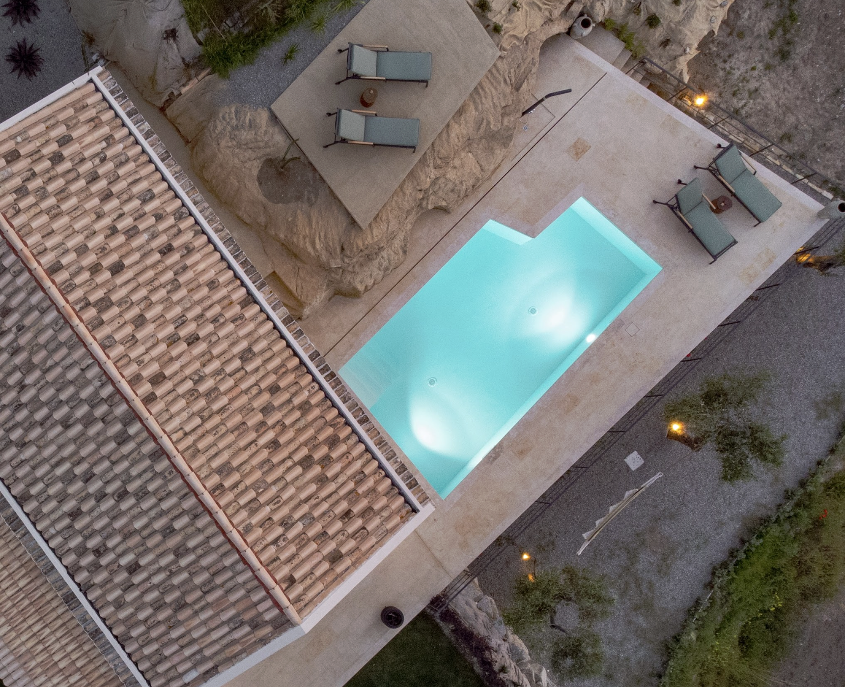 Immerso in 8 ettari di uliveto privato sulle colline che dominano Tropea, JATU Retreat è un’oasi di quiete dove natura, design contemporaneo e privacy assoluta si incontrano in perfetto equilibrio. La villa si integra armoniosamente nel paesaggio calabrese grazie a linee minimaliste, materiali locali e dettagli artigianali su misura. Le ampie vetrate panoramiche dissolvono il confine tra interno ed esterno, lasciando entrare luce e mare in ogni ambiente. La piscina infinity scavata nel tufo si apre verso l’orizzonte del Tirreno, creando una continuità visiva che invita alla contemplazione. Gli spazi, essenziali ma raffinati, accolgono fino a 4/5 ospiti in un’atmosfera intima e riservata, ideale per un soggiorno di riconnessione e benessere.
