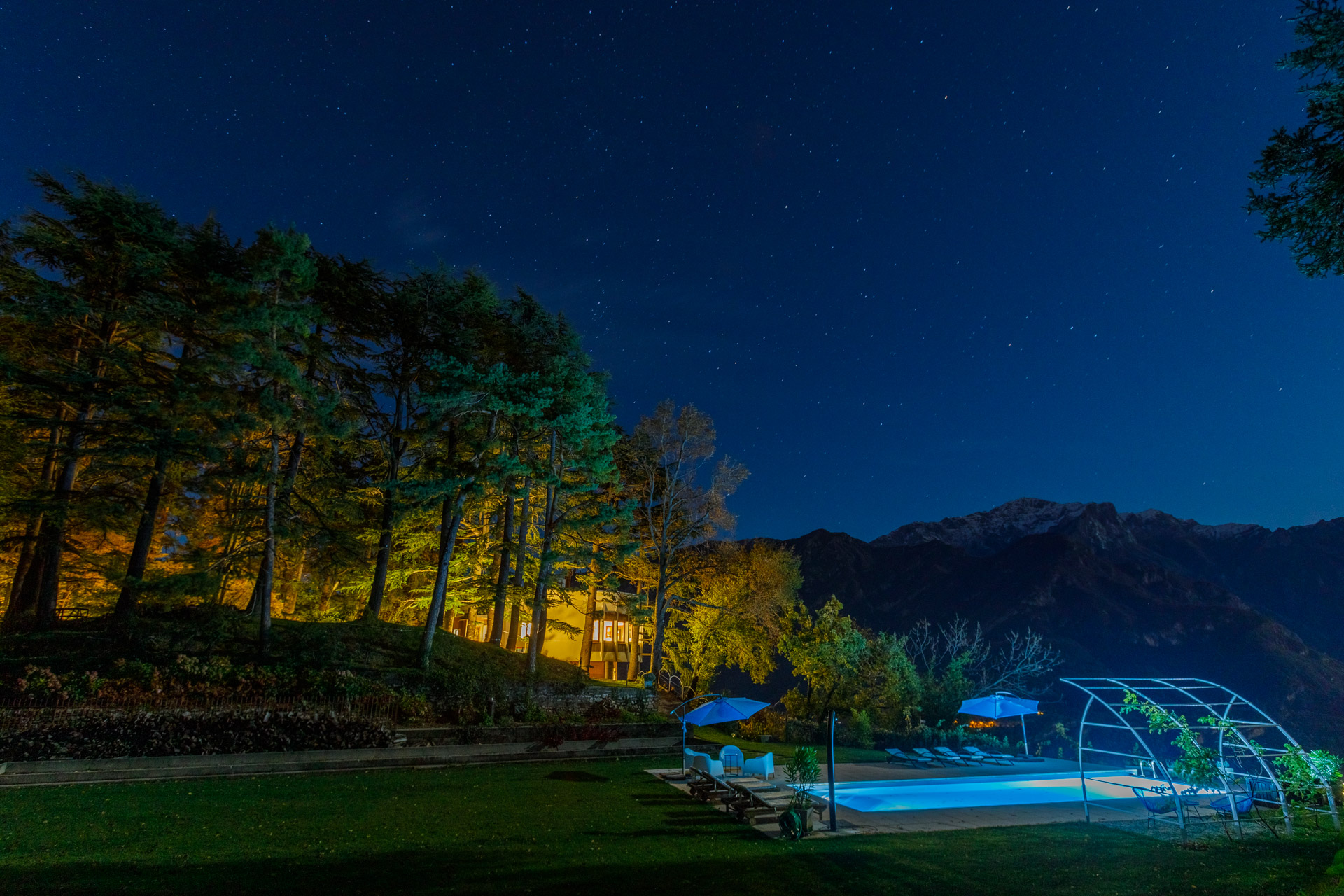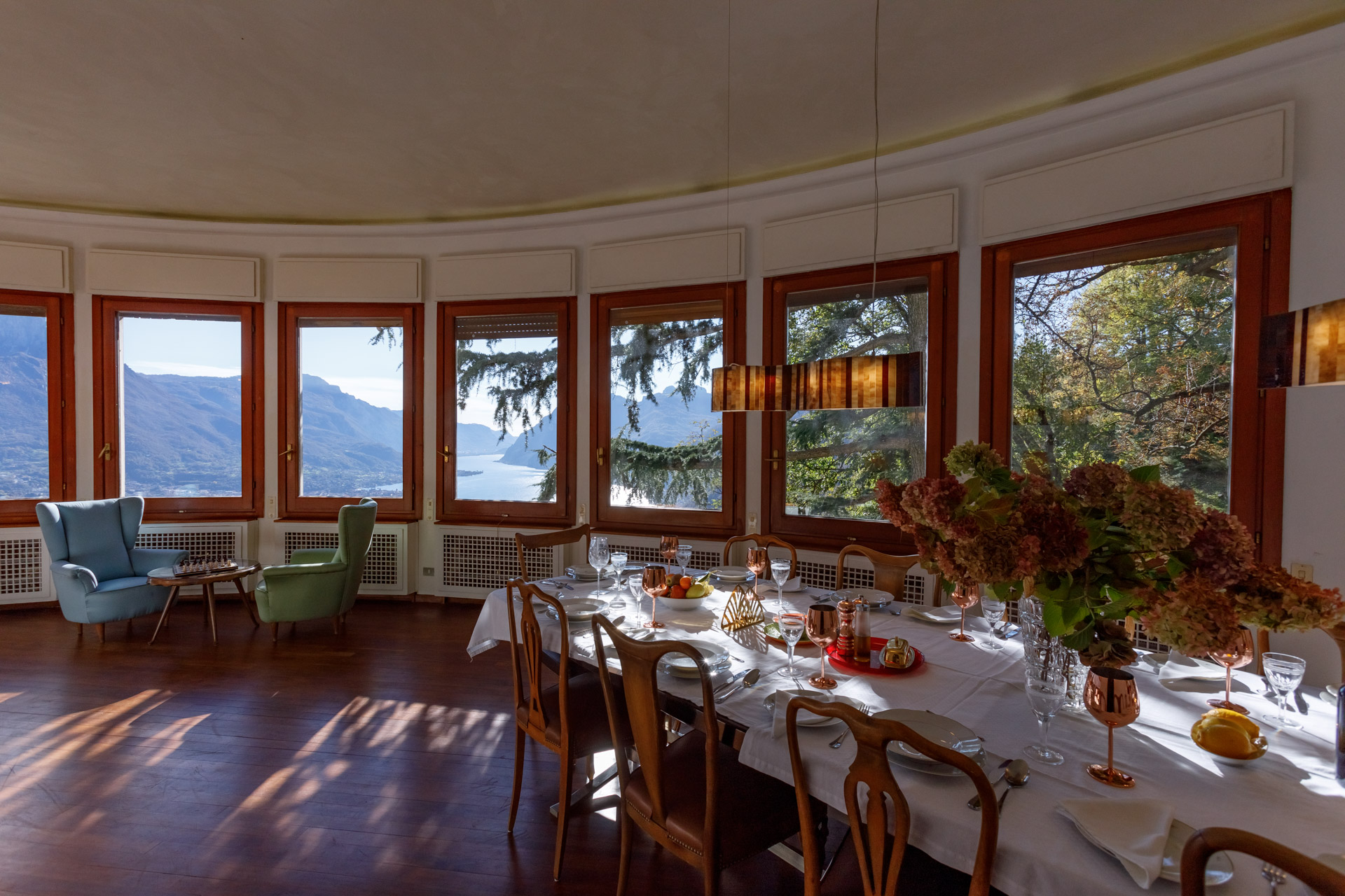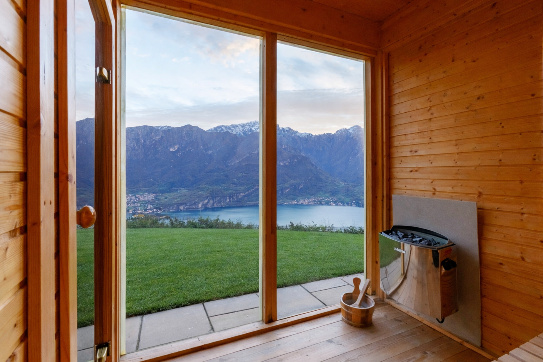 All’esterno, una spettacolare zona piscina con doppia vasca, sauna, area relax attrezzata e campo da bocce si inserisce armoniosamente nel paesaggio naturale, regalando momenti di puro benessere con vista sul Lago di Como. Giardini curati, terrazze arredate e spazi conviviali completano una proprietà unica nel suo genere.