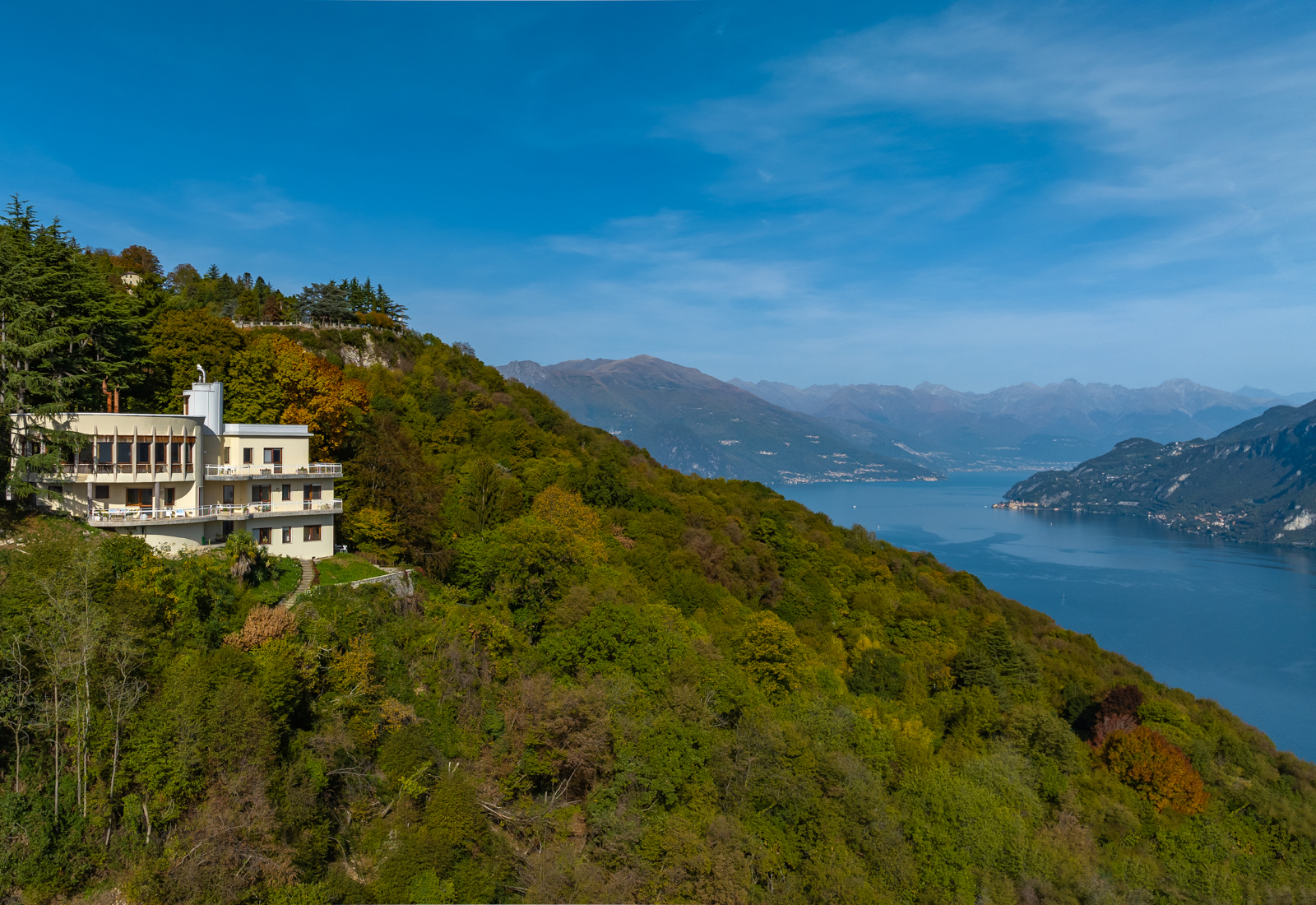 Villa Ponti Bellavista è una residenza iconica affacciata sul Lago di Como, progettata dal celebre architetto Gio Ponti e ispirata alle forme di un transatlantico d’epoca. Immersa in una foresta di cedri a 500 metri di altitudine, la villa gode di una vista panoramica a 180° sul lago e sulle Alpi, offrendo privacy assoluta e un’esperienza autentica in uno dei contesti più esclusivi della Lombardia.