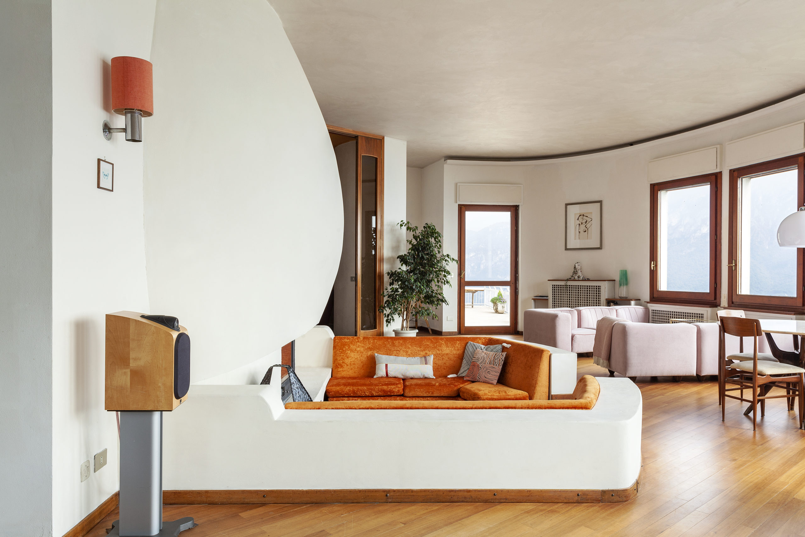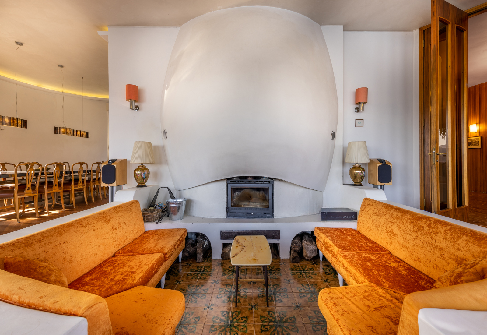 La proprietà si estende su 500 m², può accogliere fino a 15 ospiti e dispone di 6 camere da letto, 4+ bagni, ampie zone living, doppia cucina e terrazze panoramiche. Gli interni originali degli anni ’60 dialogano con comfort contemporanei, creando ambienti luminosi, scenografici e ideali per soggiorni in compagnia.
